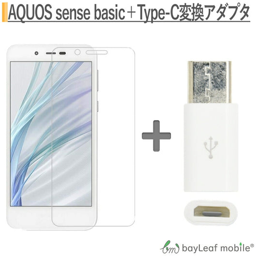 AQUOS sense basic ガラスフィルム 高透過率 薄型 硬度9H 飛散防止処理 2.5D 自動吸着 Micro USB to Type C 変換アダプタ 56K抵抗使用