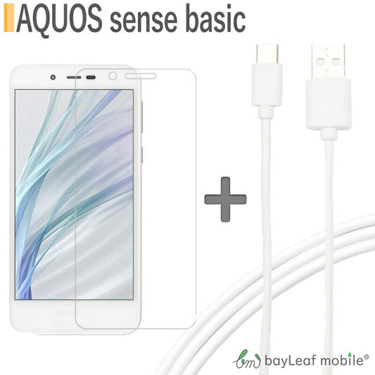 AQUOS sense basic ガラスフィルム 高透過率 薄型 硬度9H 飛散防止処理 2.5D USB Type-C ケーブル 約1m 充電ケーブル USB2.0 Type-c対応充電ケーブル
