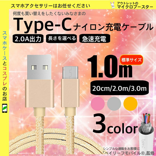 bayLeafmobile USB Type-c ケーブル タイプCケーブル 【2.0A /高速データ転送】 高耐久ナイロン編み 高速データ転送対応 Sony Xperia XZ/XZ2, Samsung Galaxy S9/S8/A9, Macbook Pro, Nexus 5X/6P, GoPro Hero 5/6 USB C 1m シルバー