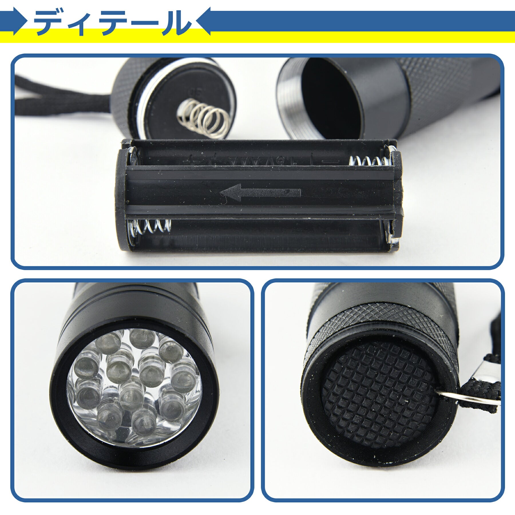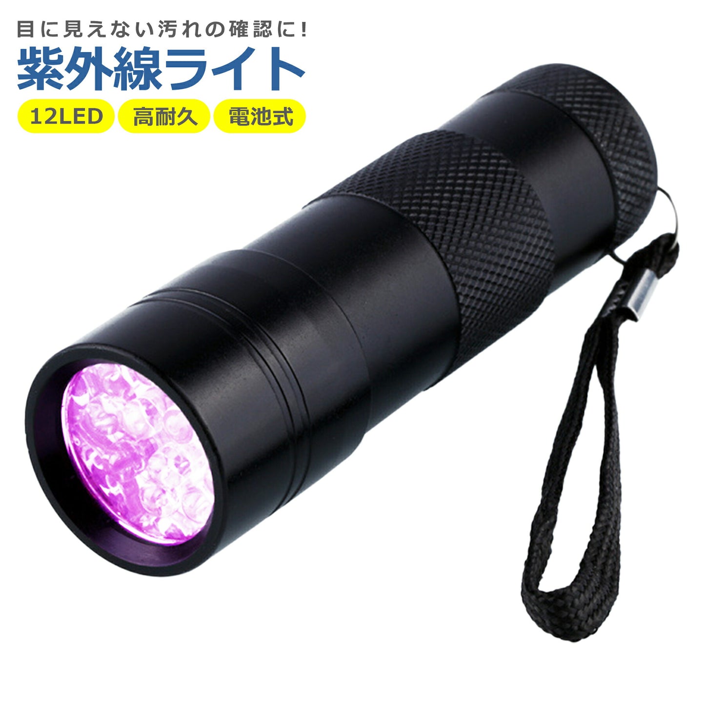 ブラックライト UV 紫外線ライト 電池式 12LED 懐中電灯 ハンディライト 片手 軽量 ミニ サイズ 乾電池 汚れ確認 アウトドア アニサキス 掃除 照射 偽造 防止 小型 蛍光 偽札鑑定