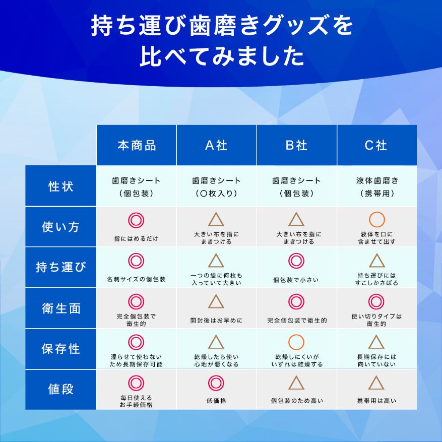 - 水・うがい不要でいつでも使用可能:どこでもサッと拭くだけ