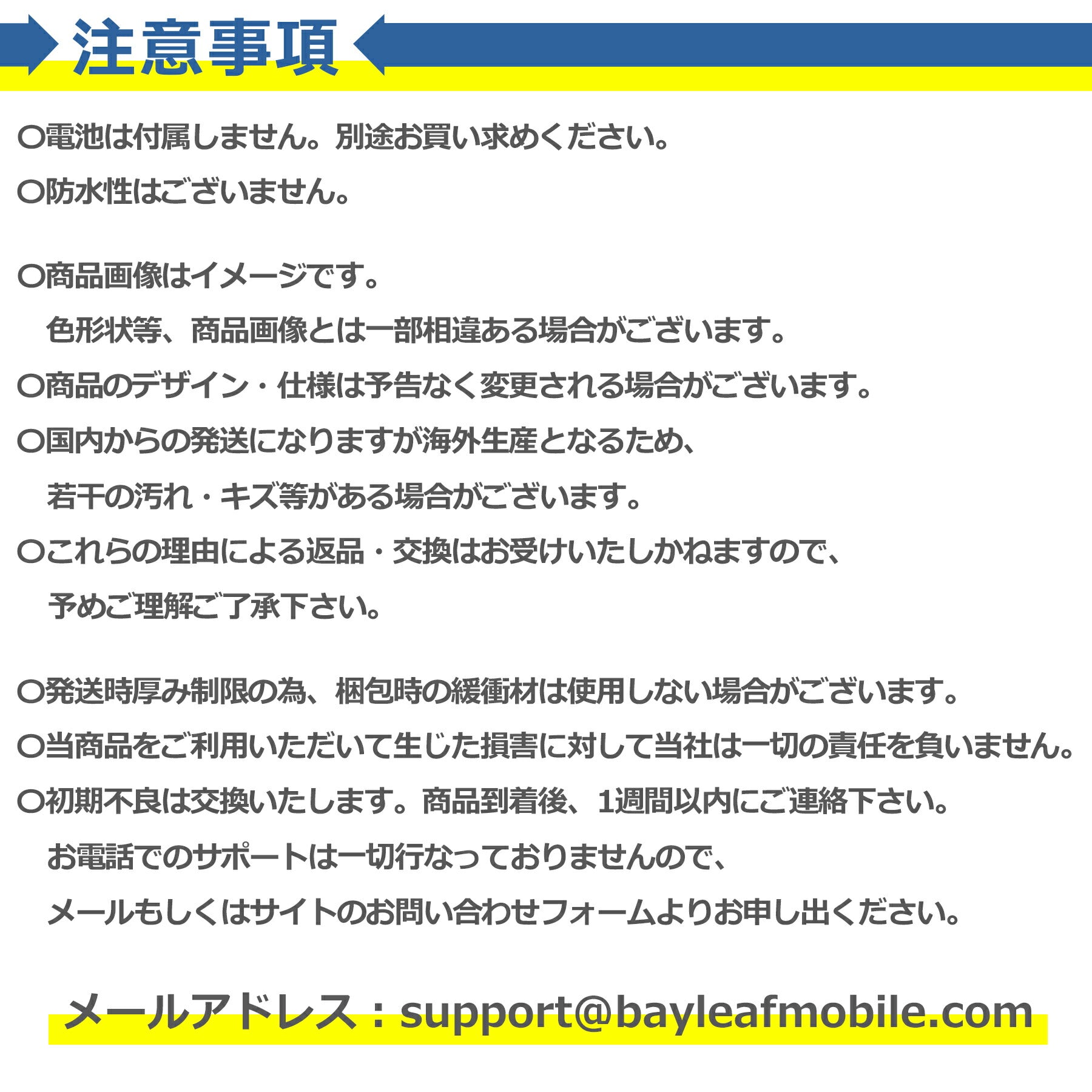 〇初期不良は交換いたします。メールもしくはサイトのお問い合わせフォームよりお申し出ください。