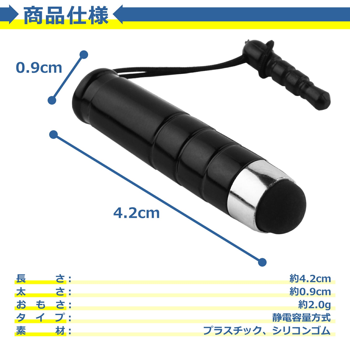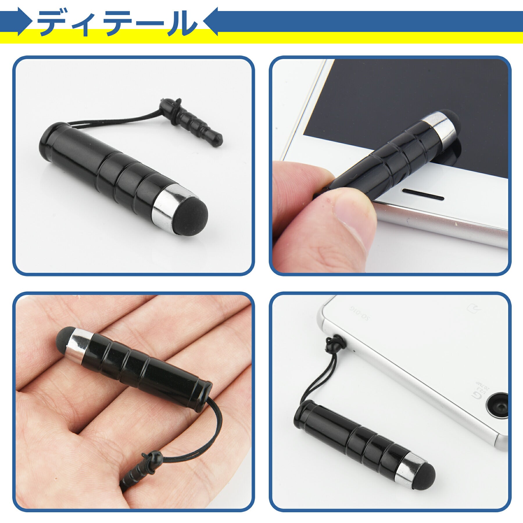 タッチペン イヤフォンジャック ストラップ ミニ ショート スマホ タブレット iPhone iPad 対応 スタイラスペン お絵描き ゲーム