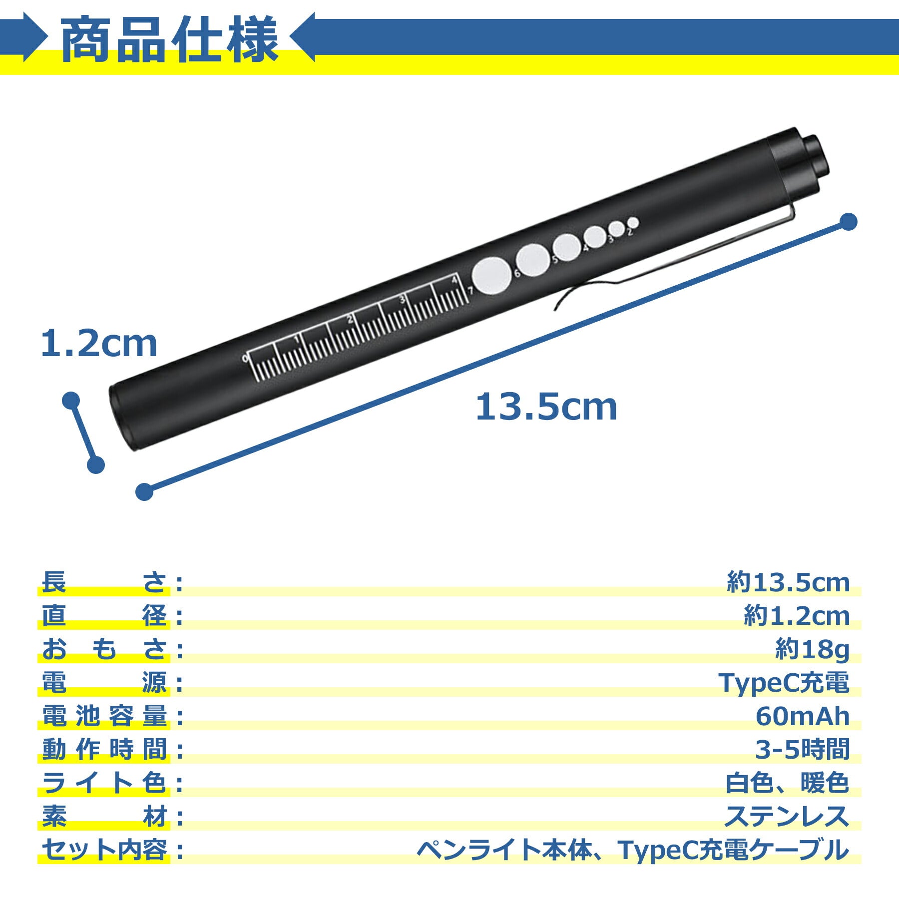 セット内容:ペンライト本体、TypeC充電ケーブル
