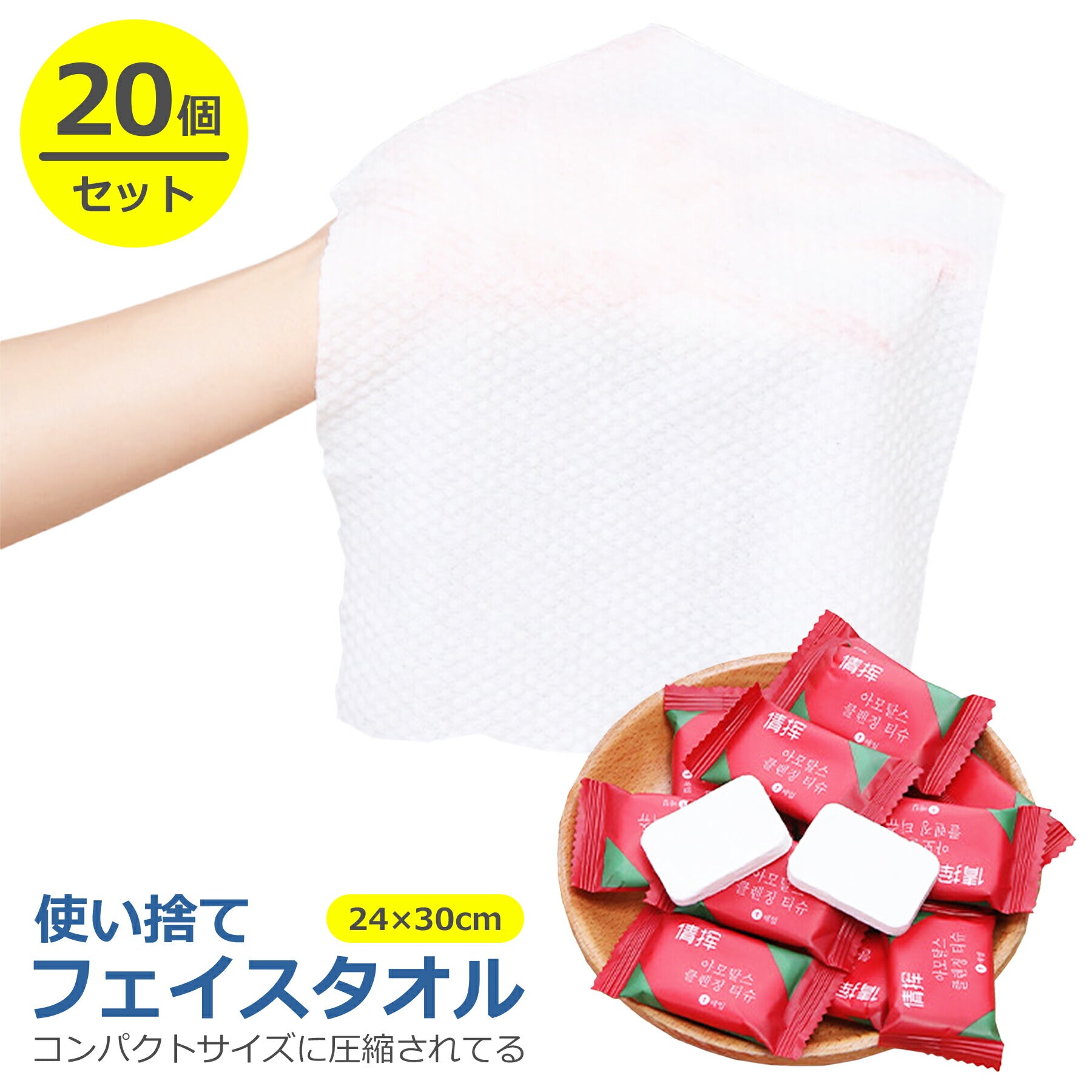 使い捨て 圧縮 フェイスタオル 20個セット 24×30cm 防災 災害 対策 グッズ コンパクト 水につけるだけ 旅行 出張 帰省 スポーツ アウトドア 海水浴 プール