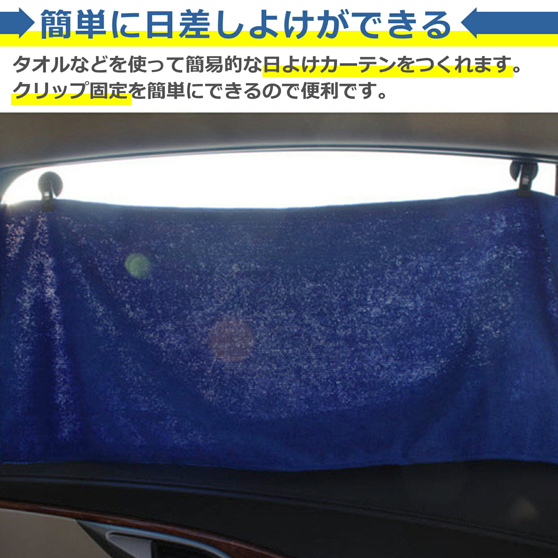 車の窓に取り付けてタオルやカーテンで簡易サンシェードを作れるほか、駐車券やメモの固定にも最適です。