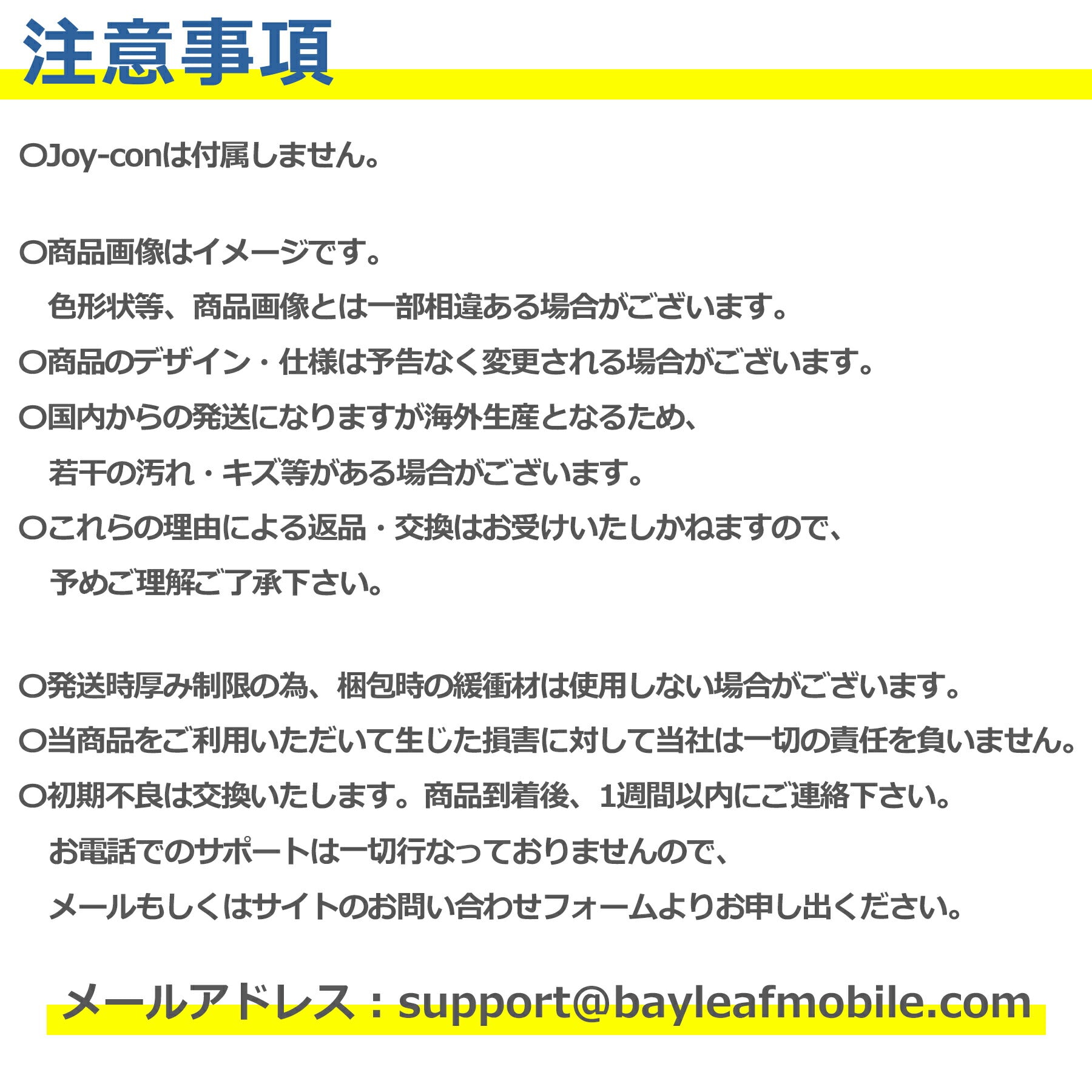 〇初期不良は交換いたします。メールもしくはサイトのお問い合わせフォームよりお申し出ください。